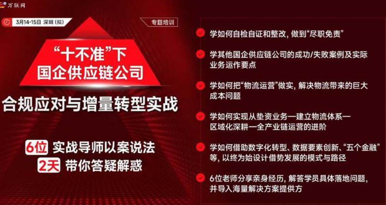 【3月14-15深圳】《“十不准”下国企供应链公司合规应对与增量转型实战》线下课程